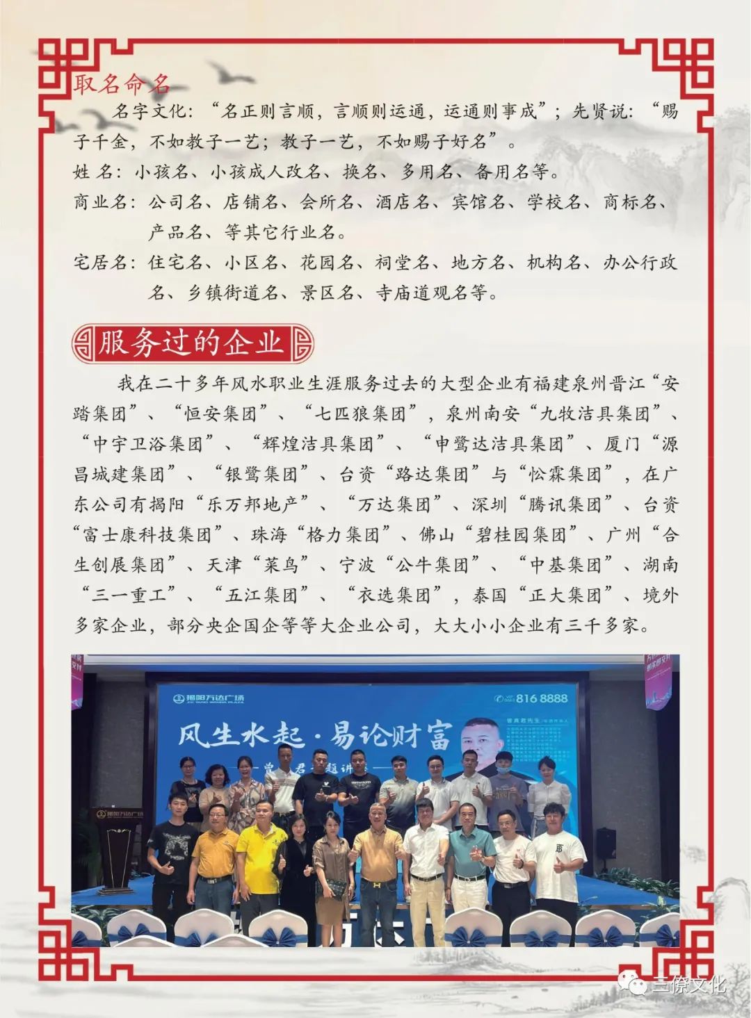 三僚真君堂、麒麟堂为杨公风水第三十八代嫡传曾真君先生创立,以传授正宗杨公风水为宗旨,为了满足风水爱好者学习风水的需要,学习到正宗三僚风水,弘扬杨公救贫精神,提供风水传承者更好的条件,服务全国各地的风水从业者,以及风水爱好者。如果您想在风水上有所造诣,欢迎来我们这里学习。