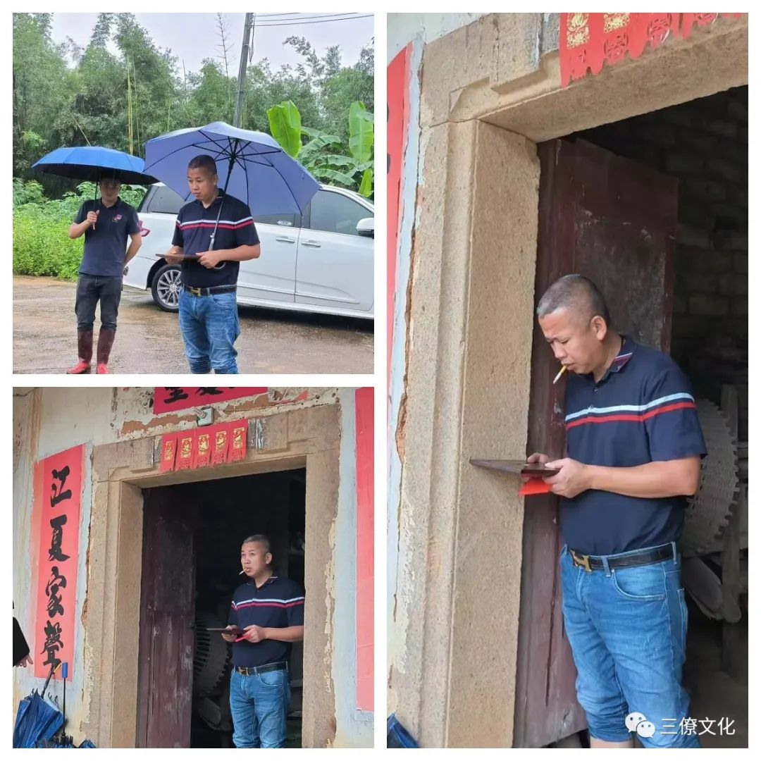 近日,受台风天影响雨水不断,虽然天气不给力,但我们三僚曾真君先生业务不断,风水无阻,雨天照样工作,带着弟子勘查黄氏祖屋。